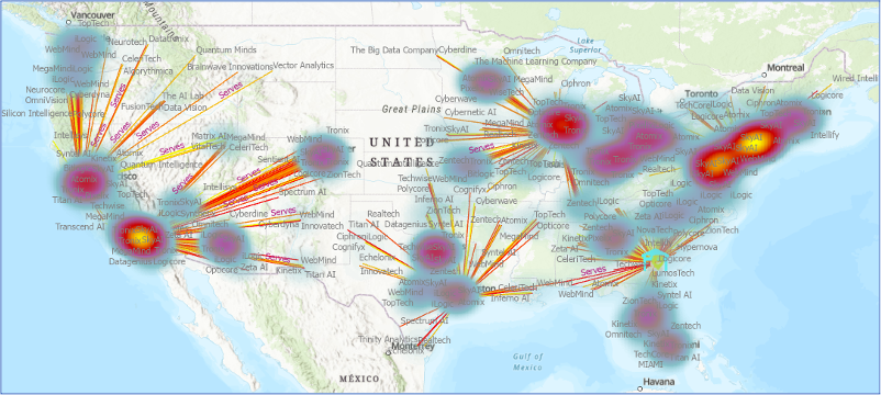 By using an ESRI component like ArcGIS Knowledge in conjunction with a graphing database like Neo4j, we gain the competitive advantage of a wide range of data sources, including maps, imagery, and geographic information. This integrates with other ArcGIS products, such as ArcGIS Pro and ArcGIS Online, enabling users to create interactive maps and perform complex geospatial analysis.